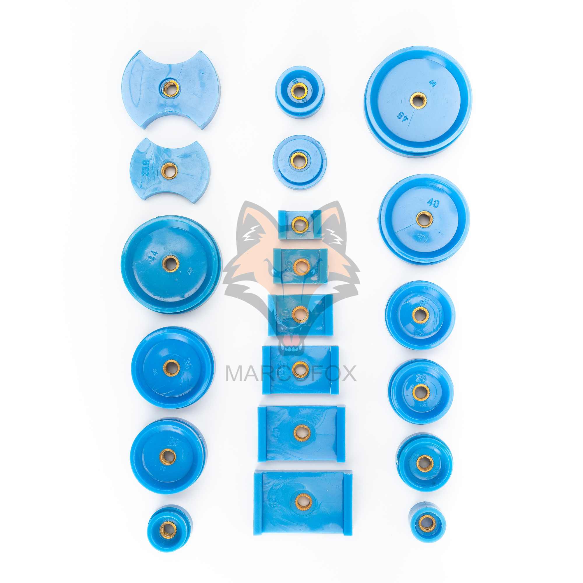 Jogo de 20 matrizes para prensa de vidro e fundo de relógio. 12 redondas – 6 retangulares – 2 com formato diferenciado