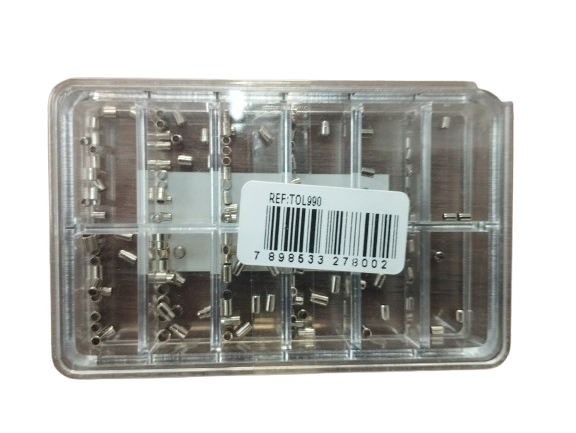 Box tubo de coroa contendo vários tamanhos diferentes.1.6x2mm; 1.6×2.5mm; 2×1.5+1.8×1.0mm