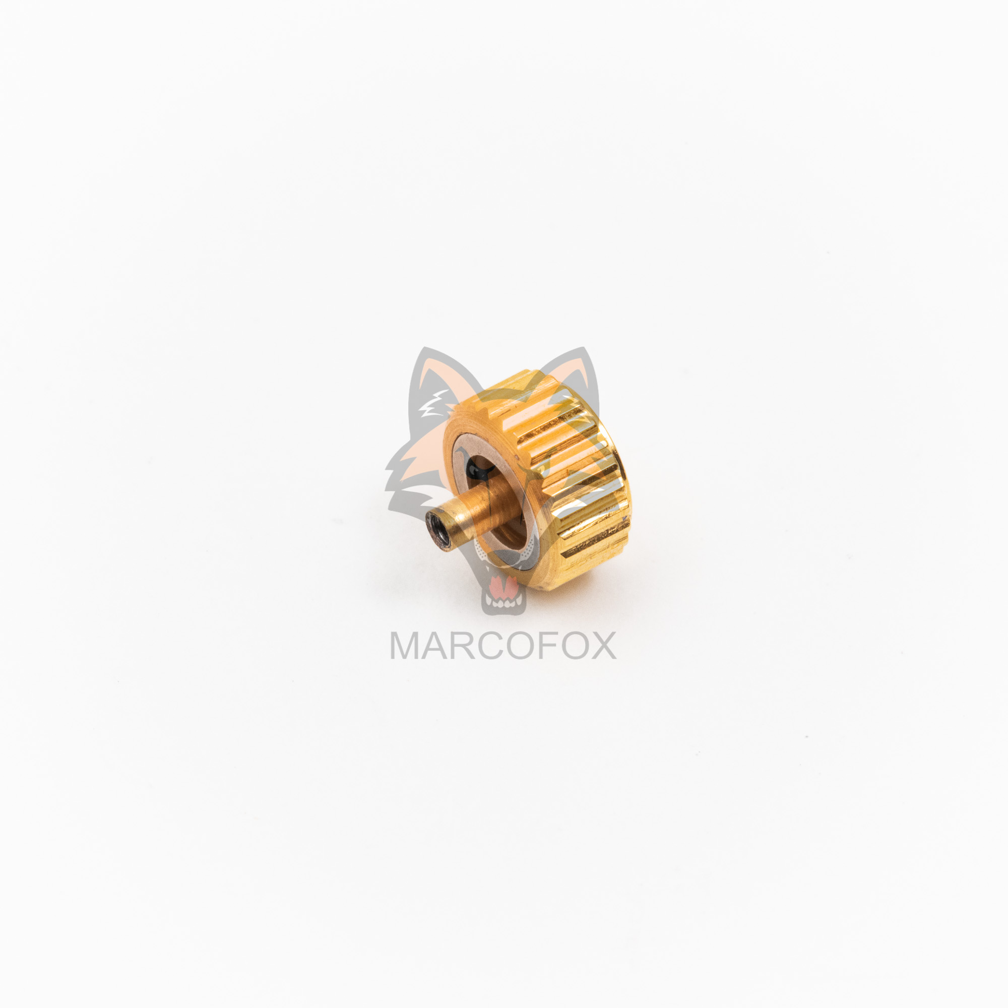 Coroa de aço com vedação dupla e rosca tradicional, rosca 90. Processo de banho IP. Compatível com alguns modelos de relógio da marca Technos.