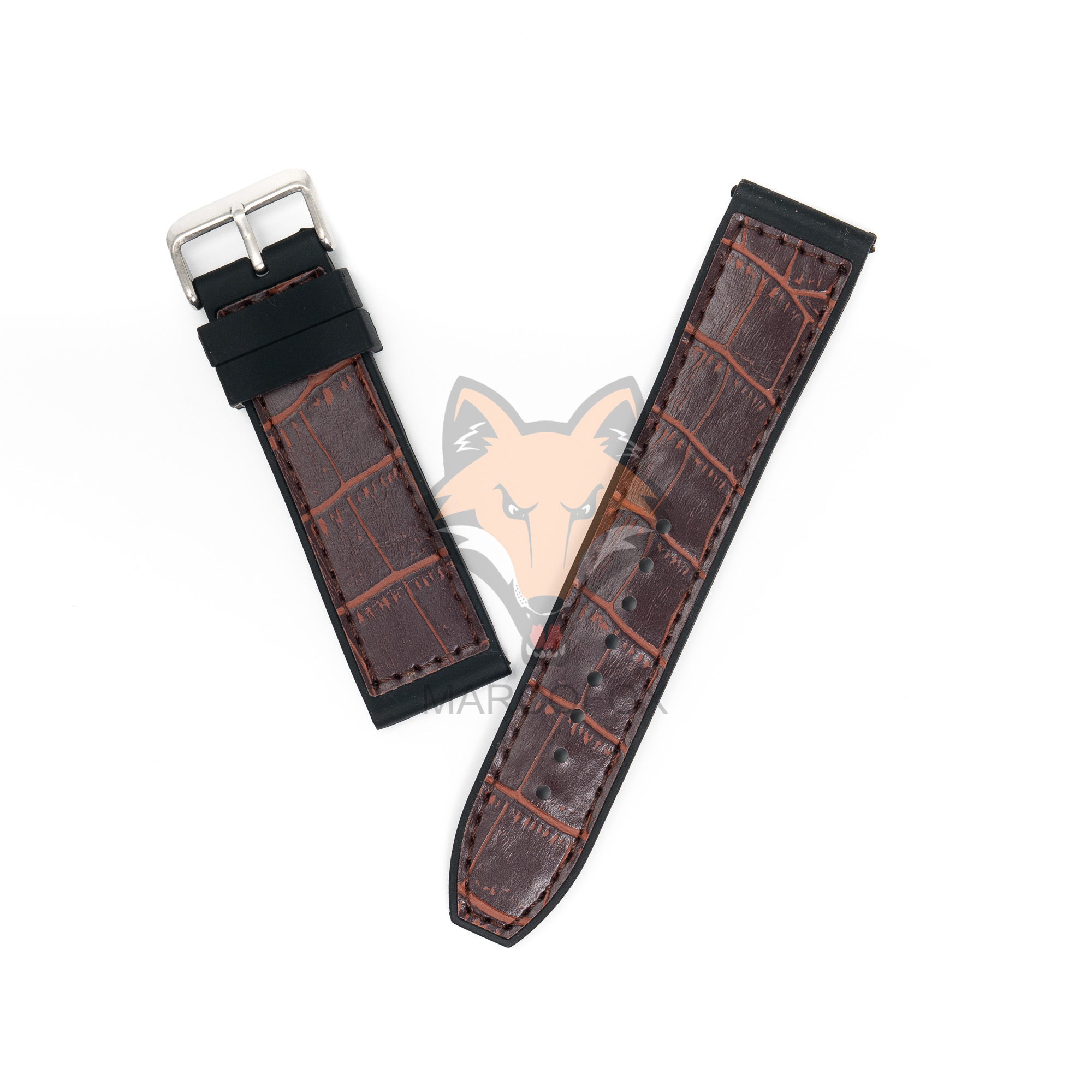 Pulseira de silicone com couro e fivela de aço